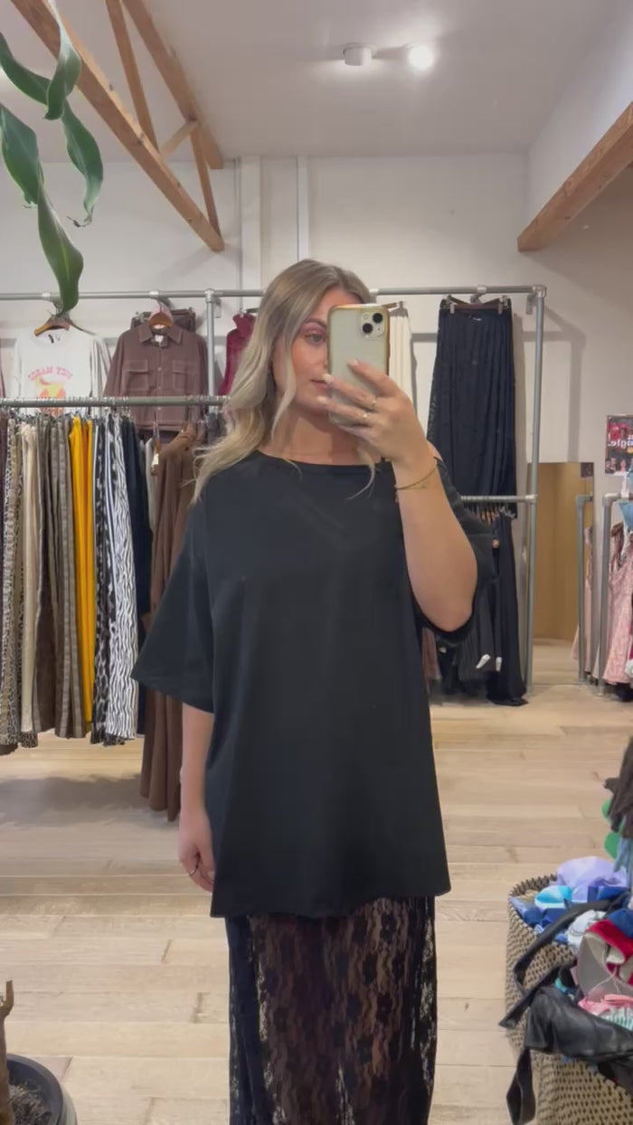One Shoulder Tshirt & Lace Skirt Set - Black / By Frankie
